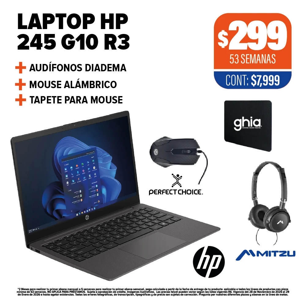 LAPTOP HP 245 G10 R3 + AUDÍFONOS + MOUSE + TAPETE