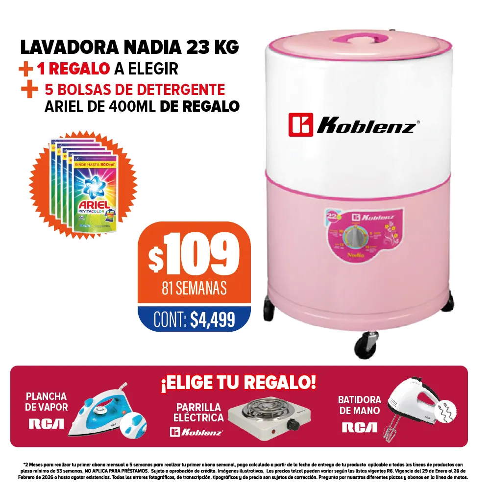 LABADORA KOBLENZ NADIA 23 KG + DETERGENTE DE REGALO + 1 REGALO A ELEGIR