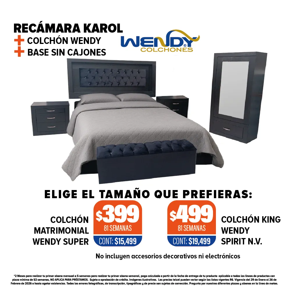 *2 Meses para realizar tu primer abono mensual o 5 semanas para realizar tu primer abono semanal, pago calculado a partir de la fecha de entrega de tu producto aplicable a todas las líneas de productos con plazo mínimo de 53 semanas, NO APLICA PARA PRÉSTAMOS. Sujeto a aprobación de crédito. Imágenes ilustrativas. Los precios telcel pueden variar según las listas vigentes R6. Vigencia al 28 de Noviembre de 2025 al 29 de Enero de 2026 o hasta agotar existencias. Todos los errores fotográficos, de transcripción, tipográficos y de precio son sujetos de corrección.
